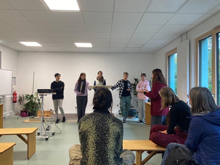 Testowaliśmy również prototyp naszej gry planszowej nad którą pracujemy intensywnie od kilku tygodni. Odwiedziliśmy też szkołę Montessori Oberschule Strausberg, gdzie przyglądaliśmy się działaniu uczniowskiej spółdzielni Erdkinderclan – inspirujący przykład edukacji, która łączy praktykę społeczną i przedsiębiorczość wśród młodzieży. Mieliśmy okazję zobaczyć, jak młodzi ludzie zarządzają własną inicjatywą, podejmują decyzje i uczą się odpowiedzialności w realnym środowisku. To doświadczenie otworzyło przed nami wiele ciekawych wniosków, które będziemy mogli wykorzystać w naszej pracy.