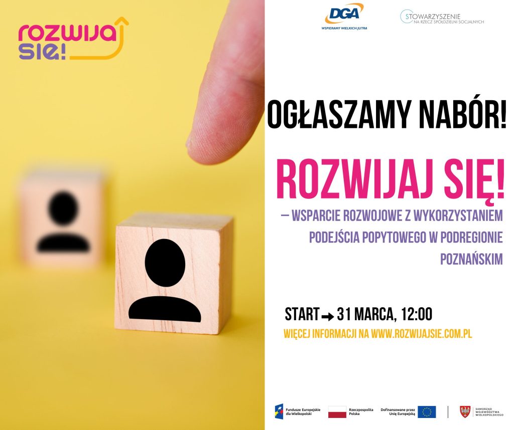 Więcej o projekcie w zakładce Rozwijaj się II – wsparcie rozwojowe z wykorzystaniem podejścia popytowego w podregionie poznańskim