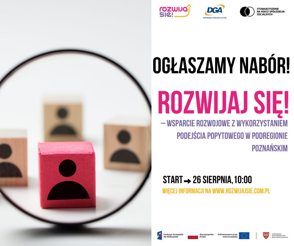Już jutro rusza nabór do projektu „"Rozwijaj się II – wsparcie rozwojowe z wykorzystaniem podejścia popytowego w podregionie poznańskim", który potrwa do 29 sierpnia! To idealna okazja, by zdobyć dofinansowanie na kursy, szkolenia i rozwój zawodowy.