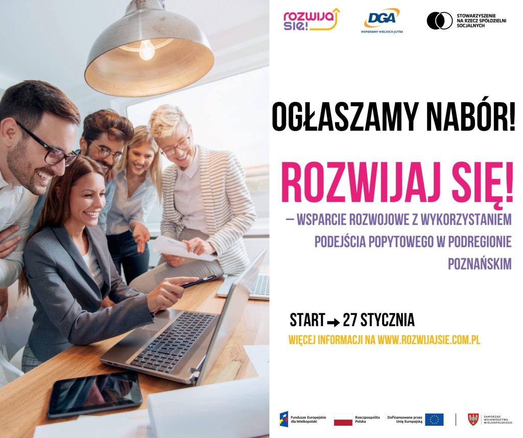Ruszył nabór do projektu „"Rozwijaj się II – wsparcie rozwojowe z wykorzystaniem podejścia popytowego w podregionie poznańskim", który potrwa do 30 stycznia! To idealna okazja, by zdobyć dofinansowanie na kursy, szkolenia i rozwój zawodowy.